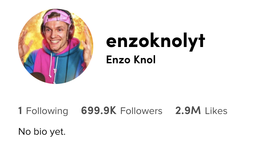 Имя пользователя (enzokholyt, ниже) также содержится в URL аккаунта. До апреля 2020 года именем пользователя было маленькое имя ниже (Enzo Knol), однако TikTok изменил эту часть интерфейса пользователя.