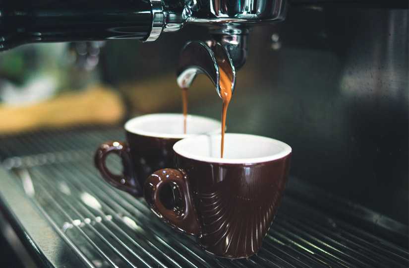 Эспрессо делают из свежих зёрен, который перемалывают в аппарате на фото выше. Это концентрированная порция кофе объёмом 35 мл, полученная под напором воды с давлением 9 атмосфер.