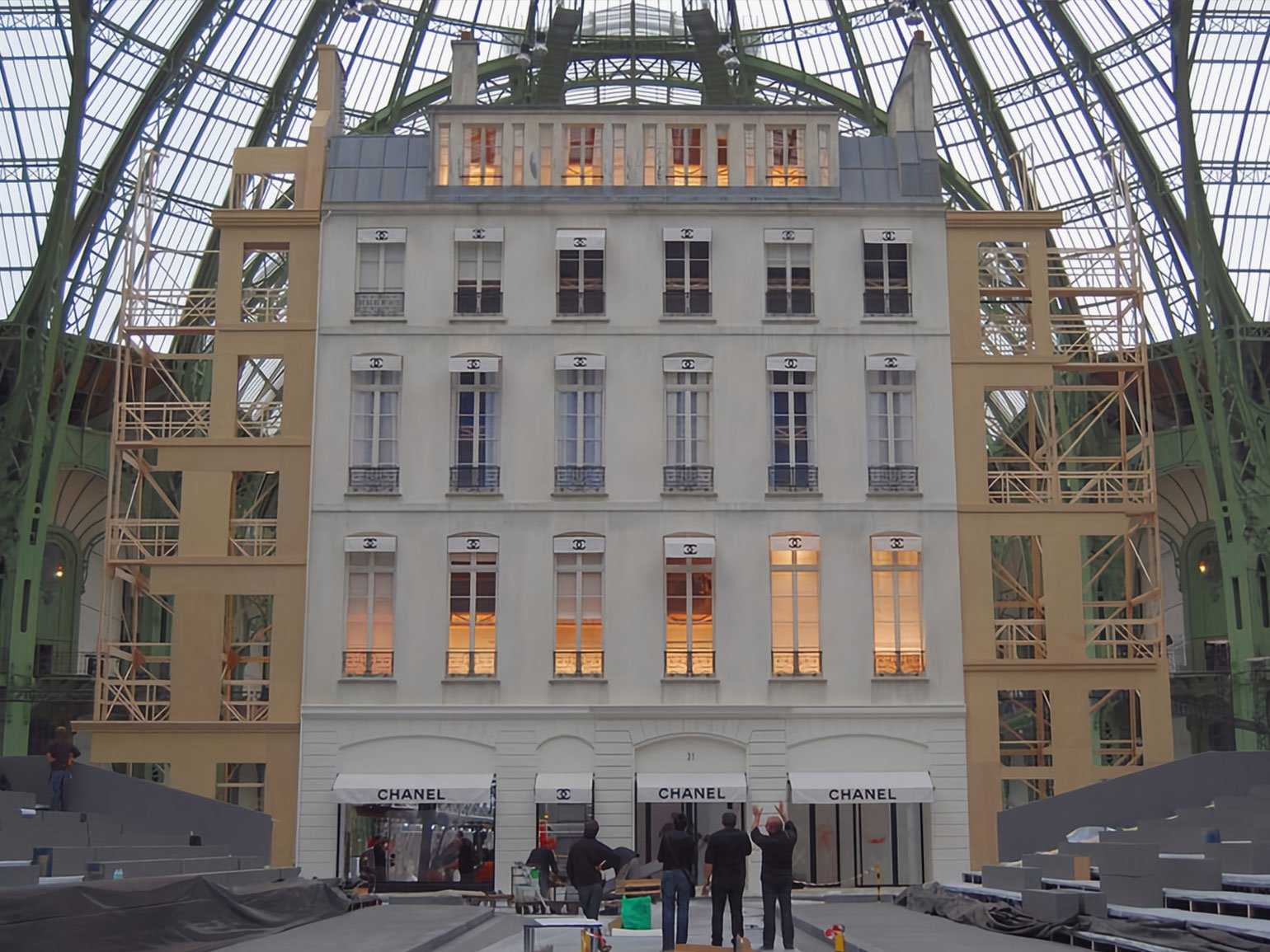 Масштабные декорации для показа Chanel в 2008 году: точная копия фасада дома по адресу 31, Rue Cambon, ParisИзображение: Atelier Devineau