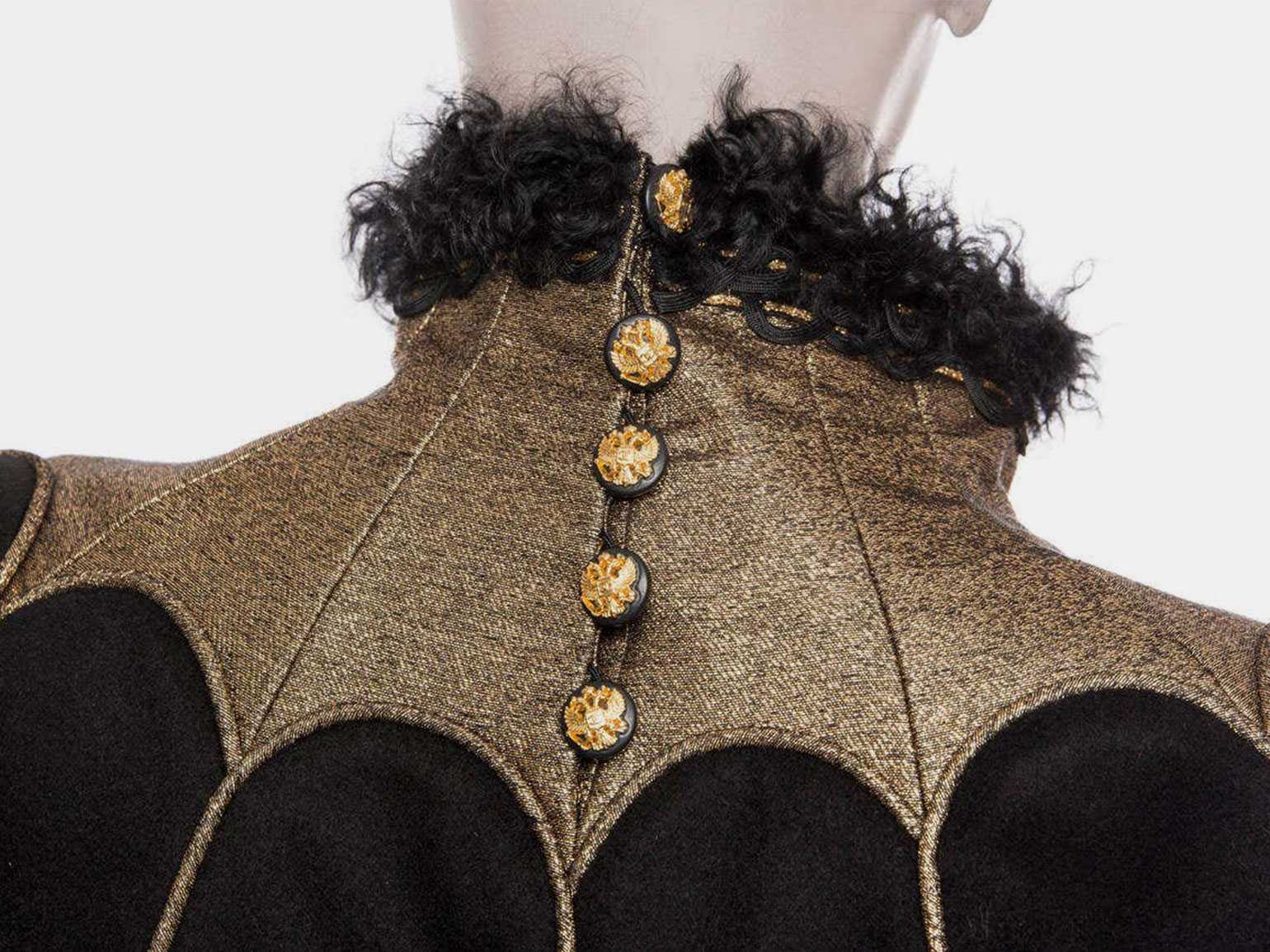 Накидка-кейп Chanel из кашемира с отделкой из меха ягнёнка и пуговицами-медальонами с двуглавым орломФото: 1sDibs