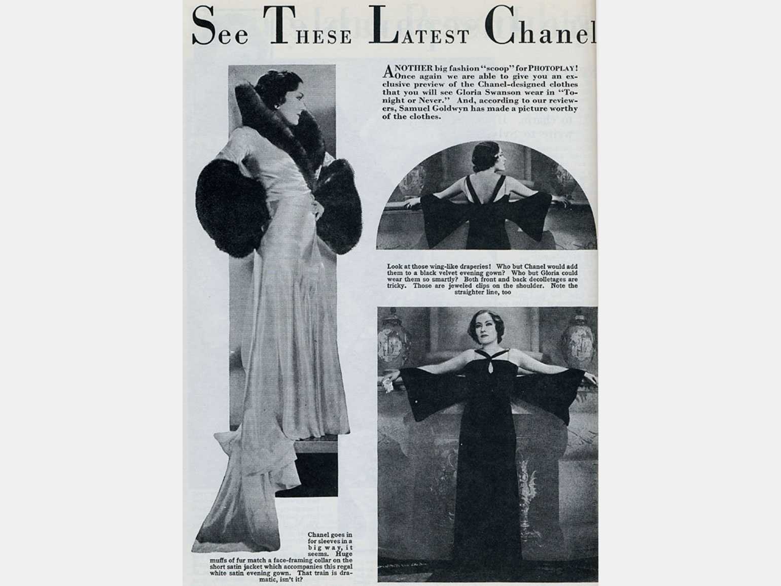 Превью костюмов, которые Шанель создала для героини Глории Свенсон в фильме «Сегодня ночью или никогда»Изображение: Fashion History Museum