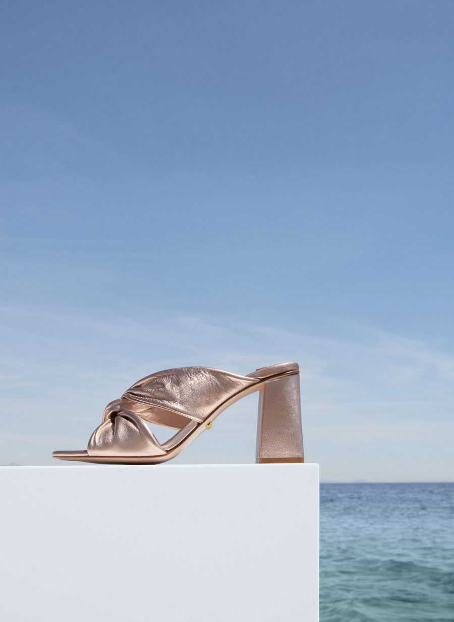 На первый взгляд пара напоминает простые шлепанцы. Только с более продуманным дизайном. При наличии грациозного подъема и изящного декора – их могут назвать босоножками . Главным признаком является открытая пятка без задника. Отсутствует даже небольшой ремешок или декоративная цепочка. Держатся за счет союзки. Это область в передней части, в районе пальцев до места подъема.