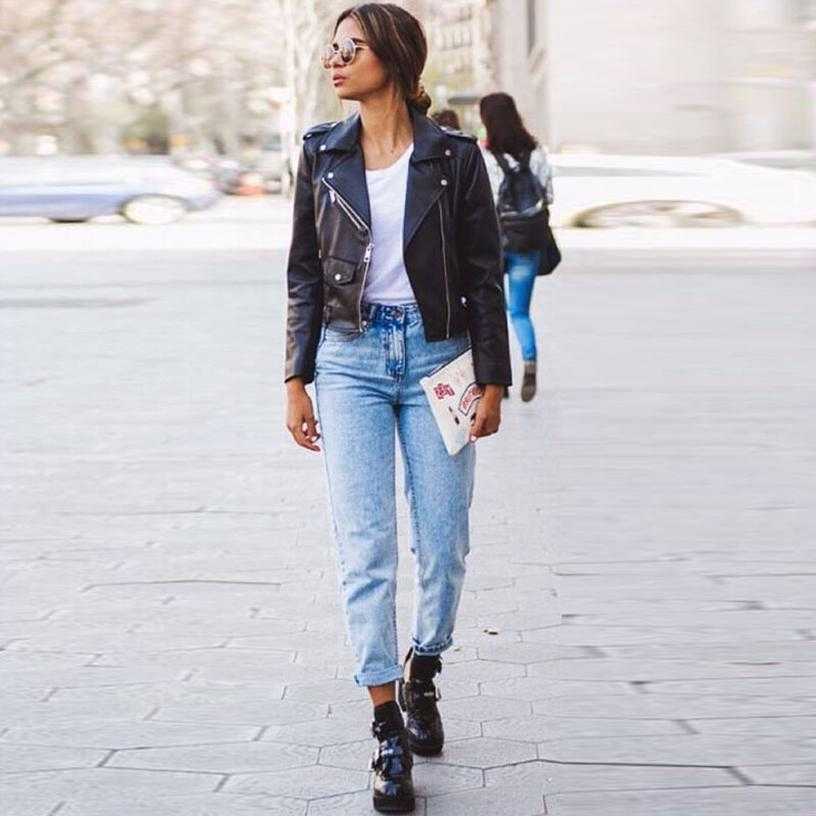 В более прохладный осенний или весенний сезон стилисты предлагают нам комбинировать между собой джинсы мом со следующими вещами: