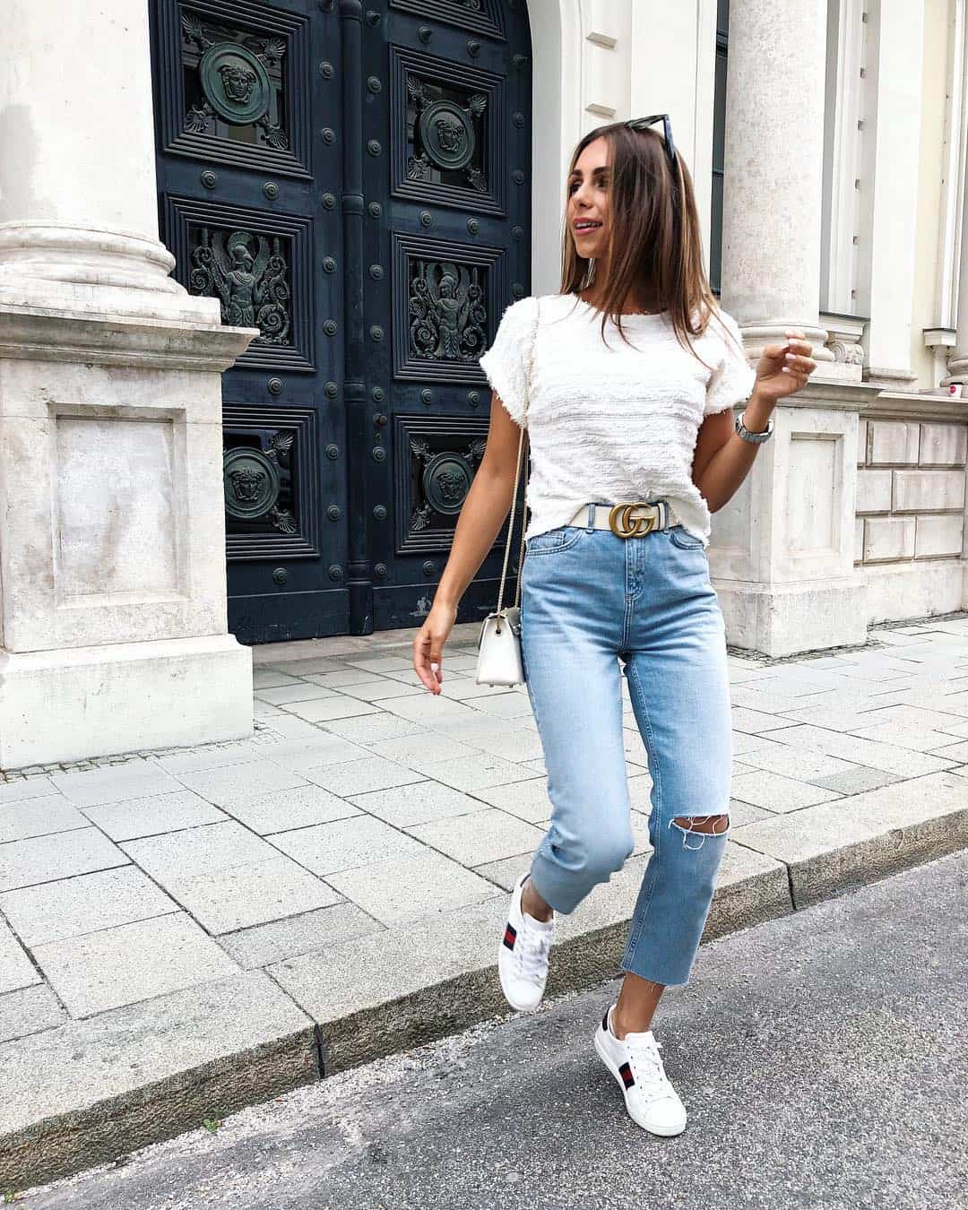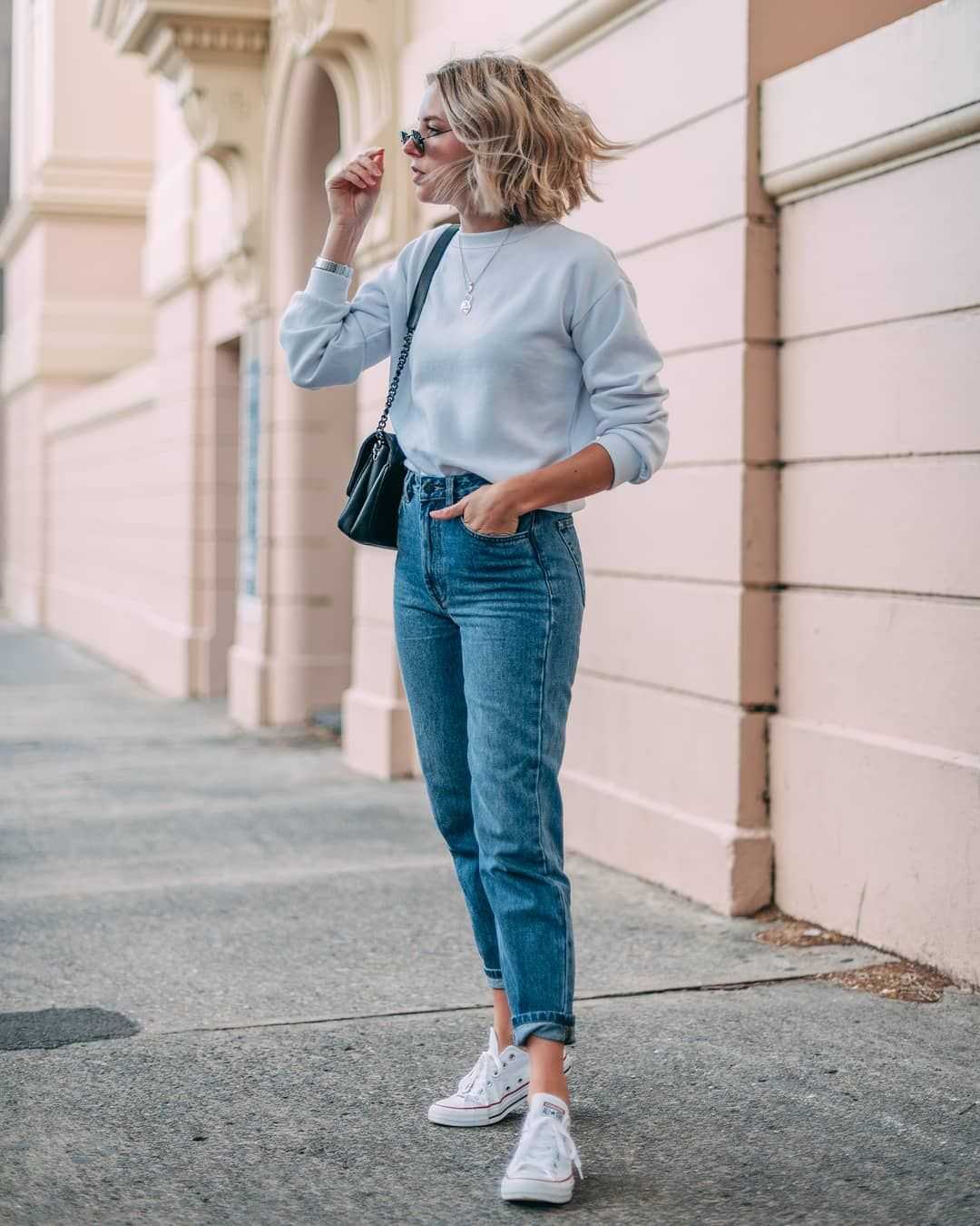 Стильные образы с джинсами мом могут получиться исключительно при правильном комбинировании вещей