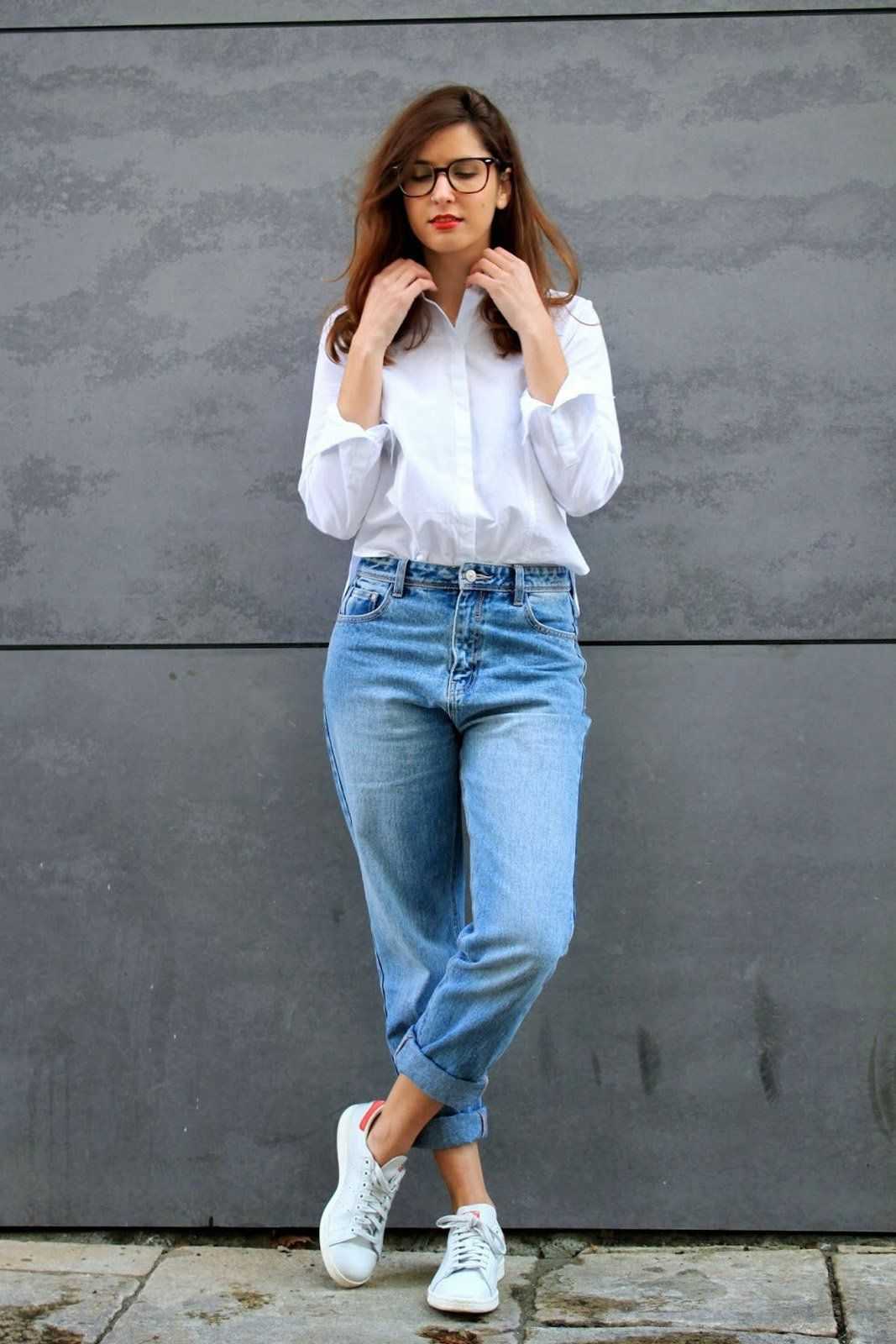 Момы отлично сочетаются с классической белой рубашкой и элегантной обувью.