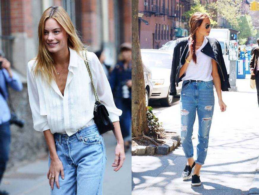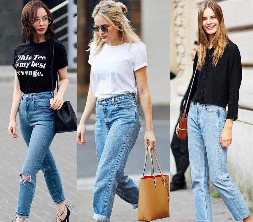 Модные образы и луки с джинсами мом на фото