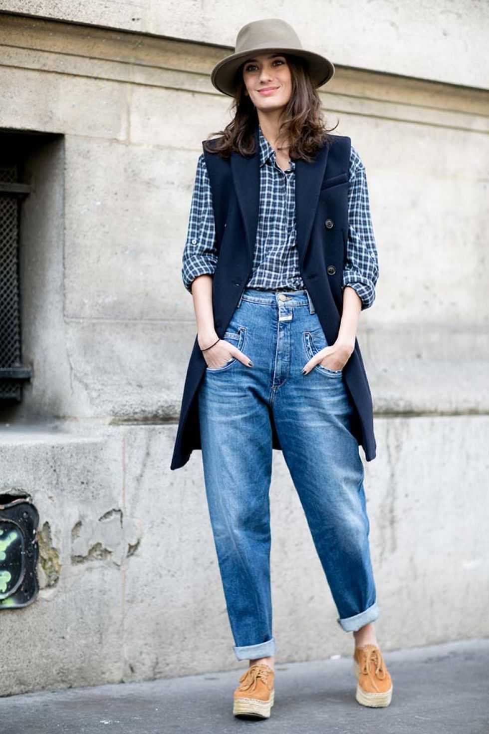 Сочетания джинсов мом с верхом