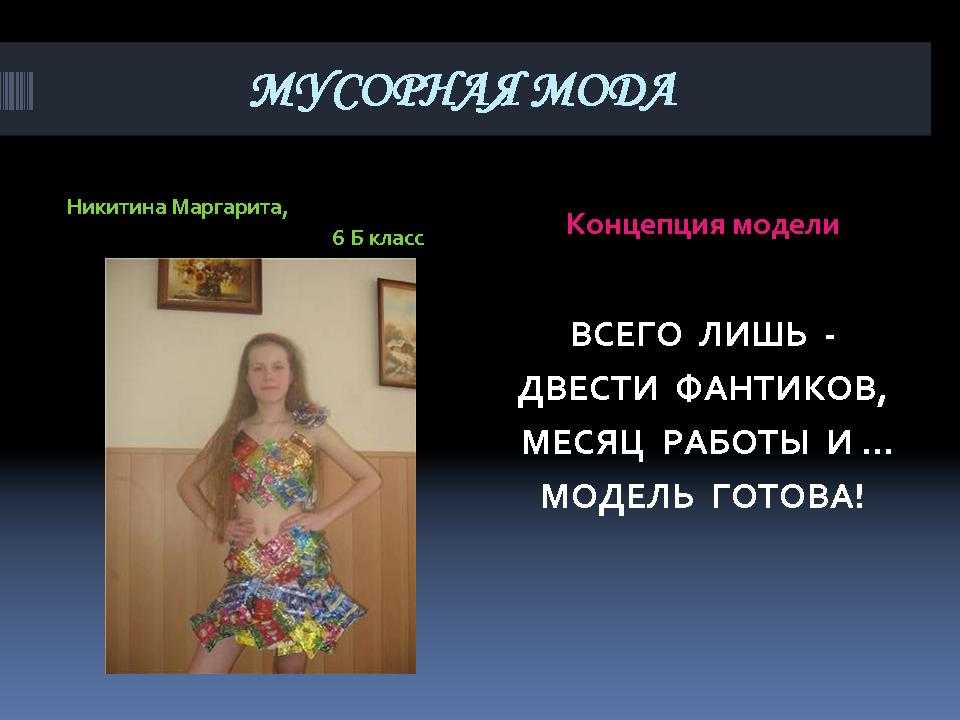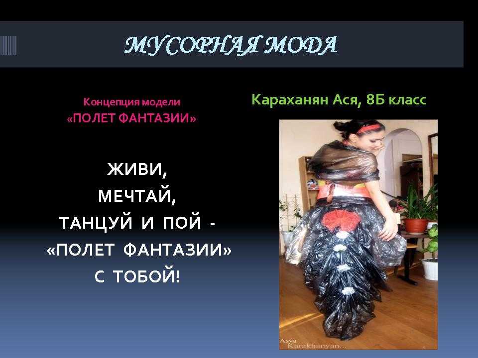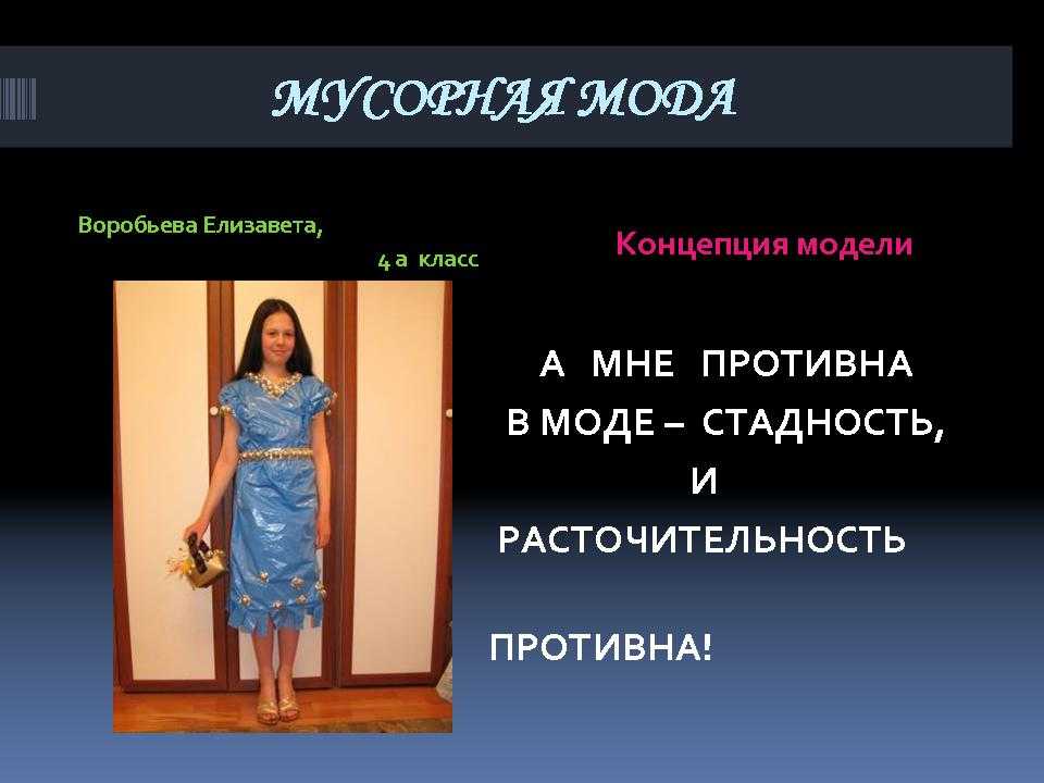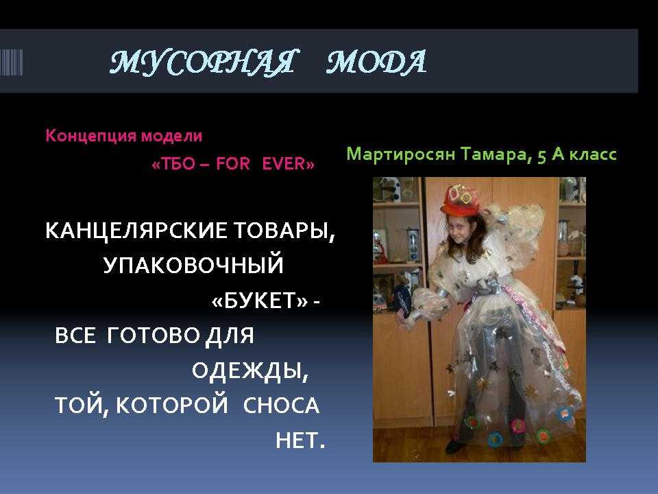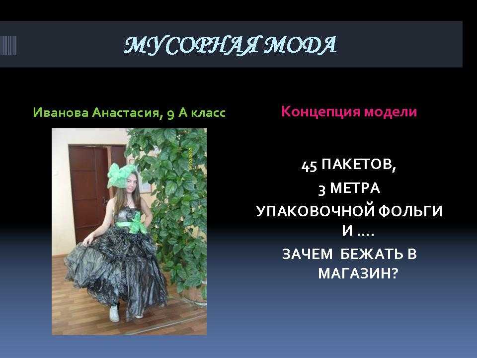 - Домашнее задание: изготовить модель одежды из твердых бытовых отходов и определить концепцию модели.