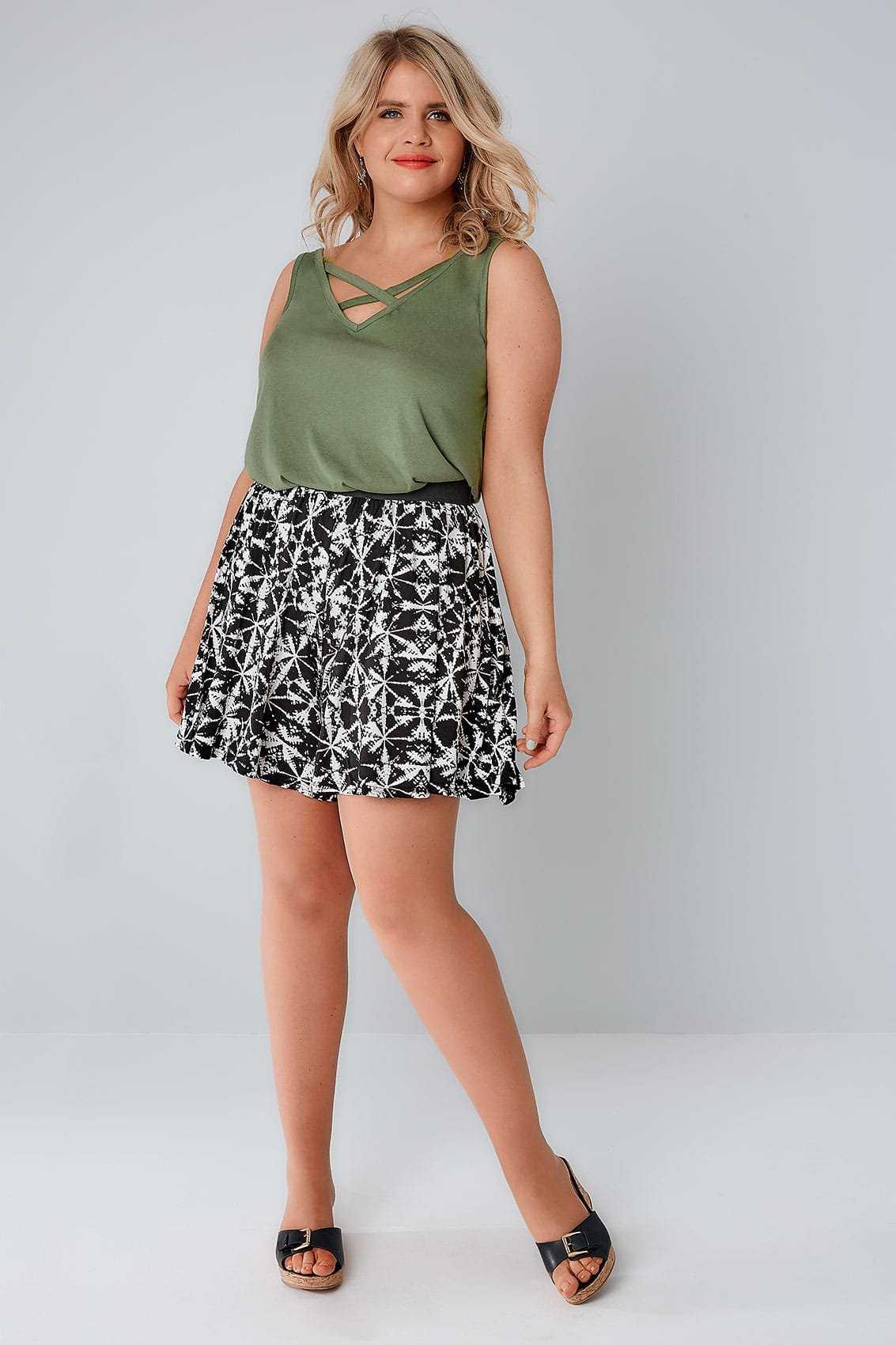 Женские недостатки фигуры плюс сайз идеально скроет фасон юбка-шорты. Длина модели может быть различной в зависимости от стройности женских ножек, которое способны позволить даже короткие варианты до колен. Для делового стиля рекомендовано приобретать однотонную цветовую гамму.