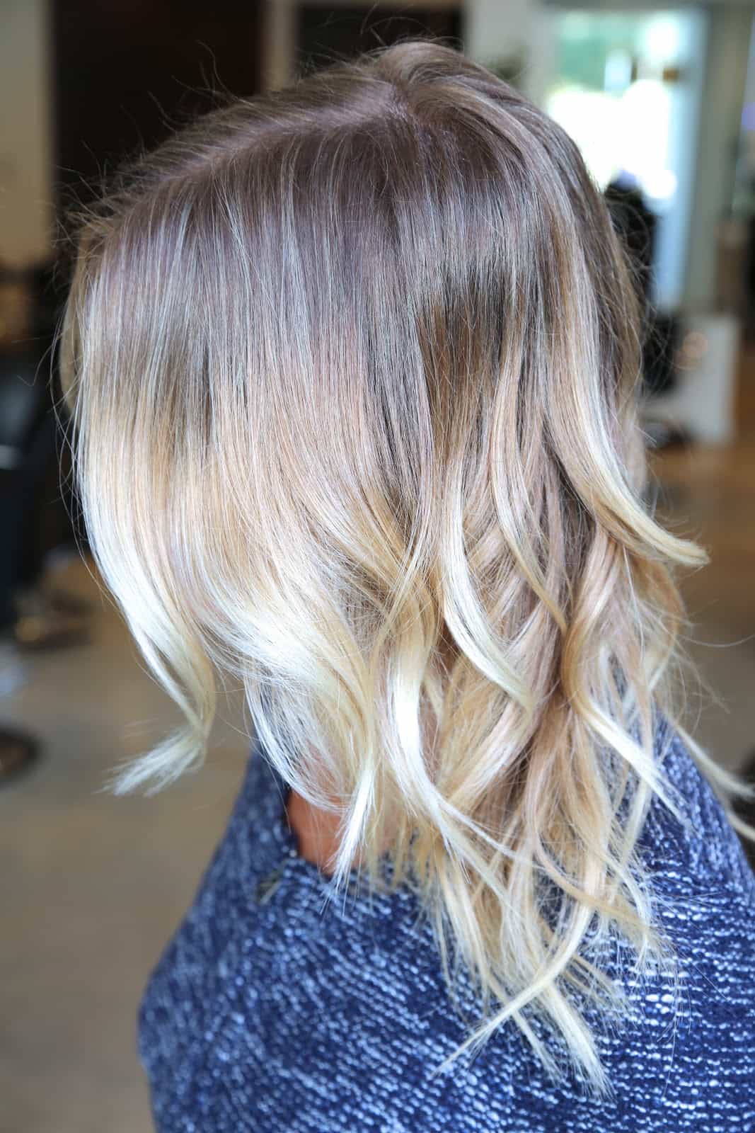 Здесь в принципе работают те же правила, что и при окрашивании русых волос. Но если волосы очень светлые, корни все-таки лучше немного затемнить. Правда затемнение корней потребует их регулярного подкрашивания, но результат того стоит.