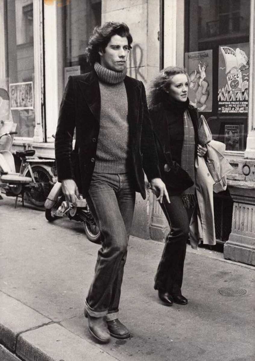 Джон Траволта стал звездой в конце 1970-х, после выхода «Лихорадки субботнего вечера» (1977 год) и «Бриолина» (1978 год). Его стиль был чем-то схож с характером его персонажей — обычных парней с рабочих окраин, которые были не так просты, как казались. Присмотритесь — на нем обычные, на первый взгляд, вещи: пиджак, пуловер, джинсы и ботинки, но какое разнообразие фактур — аристократичный бархат, утилитарный деним, грубая кожа и уютный шерстяной трикотаж!