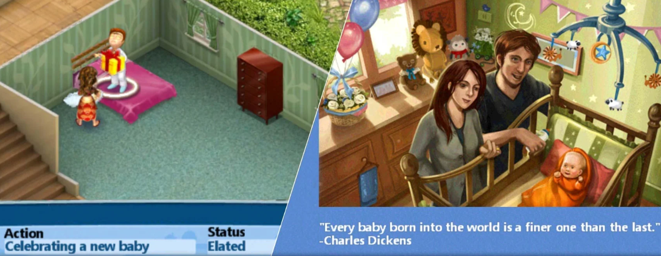 Virtual Families – небольшая простая игрушка, название которой переводится как «Идеальная семья». Она не такая сложная, как Симс, т.к. количество действий у героев ограничено. Но, тем не менее, создавая игрока, вы должны обеспечить ему нормальную жизнь: следить за тем, чтобы он был накормлен, помыт, поспал и т.д. Со временем вы можете его женить, родить детей и заниматься уже их воспитанием. Если вы не успеете это сделать, персонаж состарится и умрет, игра на этом завершится.