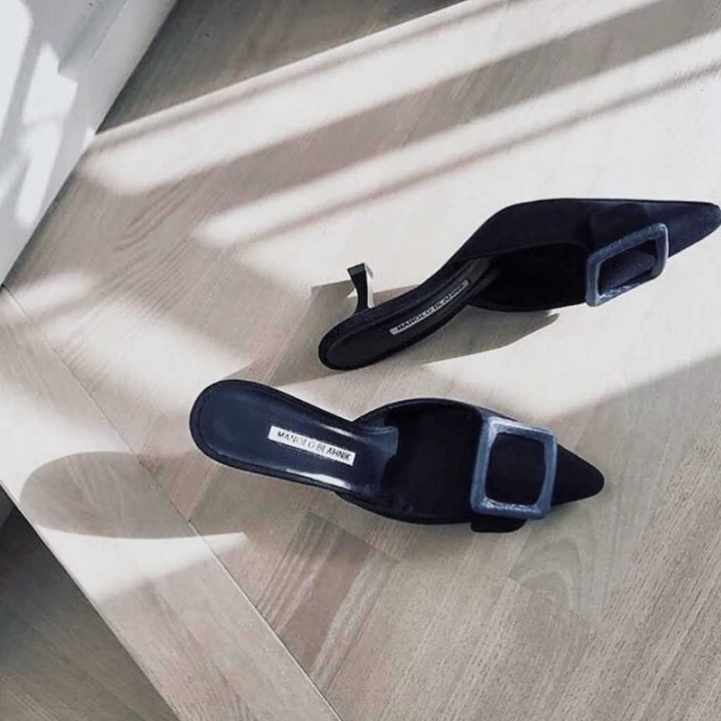 Обувка с открытой пяткой, которая держится на ножке женщины за счет верхней части – мюли. Идут без ремешка. Этой весной такой вариант туфлей предпочтительно выбирать с заостренным носком. Это мегапопулярный лук на показах у многих кутюрье