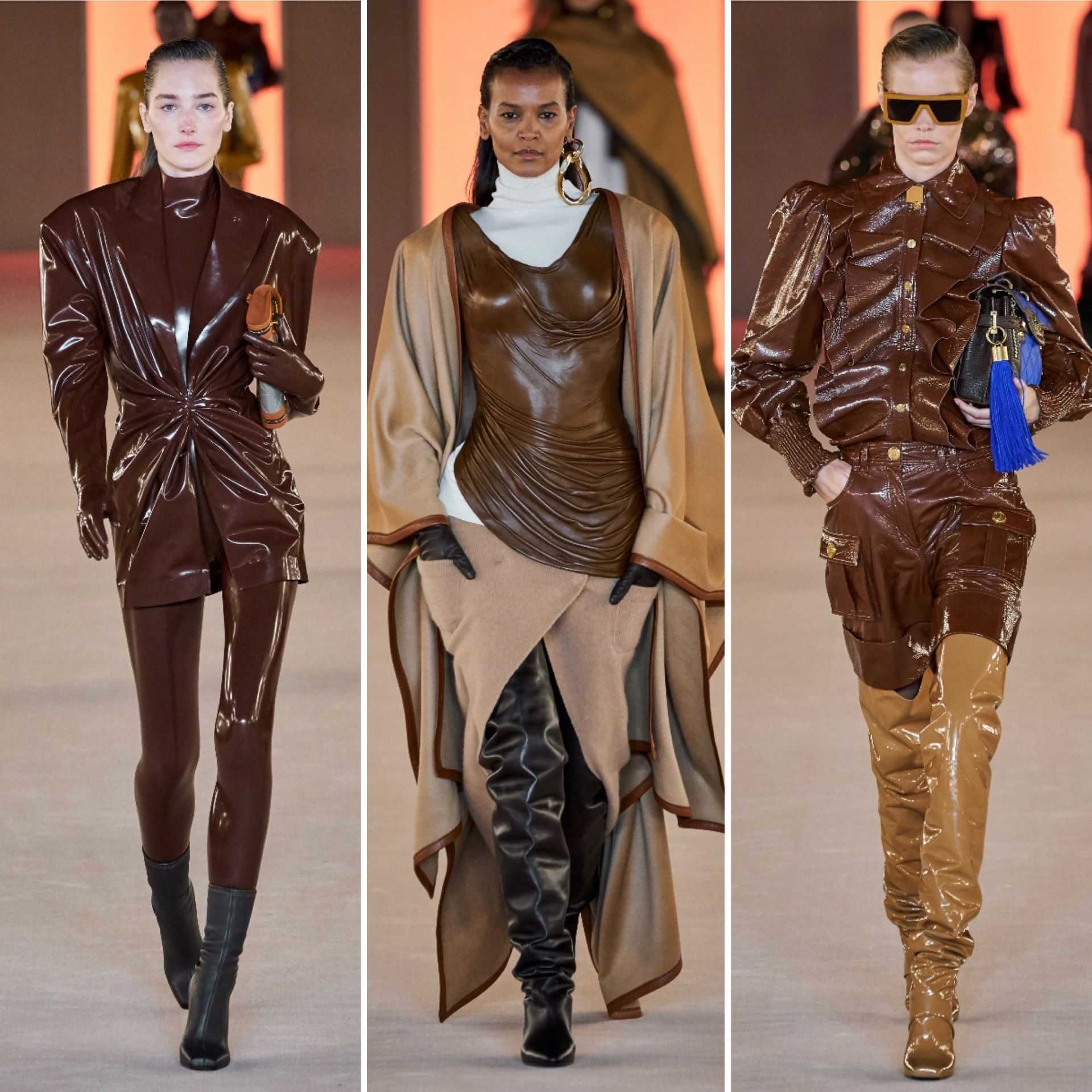Несмотря на то, что самые прогрессивные дизайнеры стараются не просто вернуть старый тренд из 90-х на подиумы, а создать новое прочтение латексной одежды, многие остаются при мнение, что эта история абсолютно не для них. На показах этого сезона на подиумах можно увидеть не только платья и комбинезоны из латекса, но и вполне консервативную одежду: классические рубашки, водолазки, брюки и тренчи.