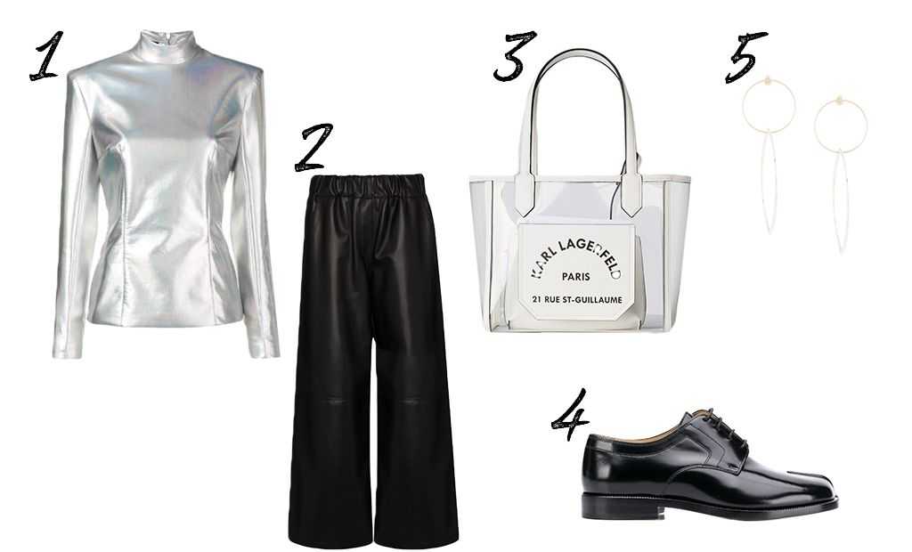 1 – водолазка Balmain, 2 – брюки Loewe, 3 – сумка Karl Lagerfeld, 4 – ботинки Maison Margiela, 5 – серьги Natalie Marie