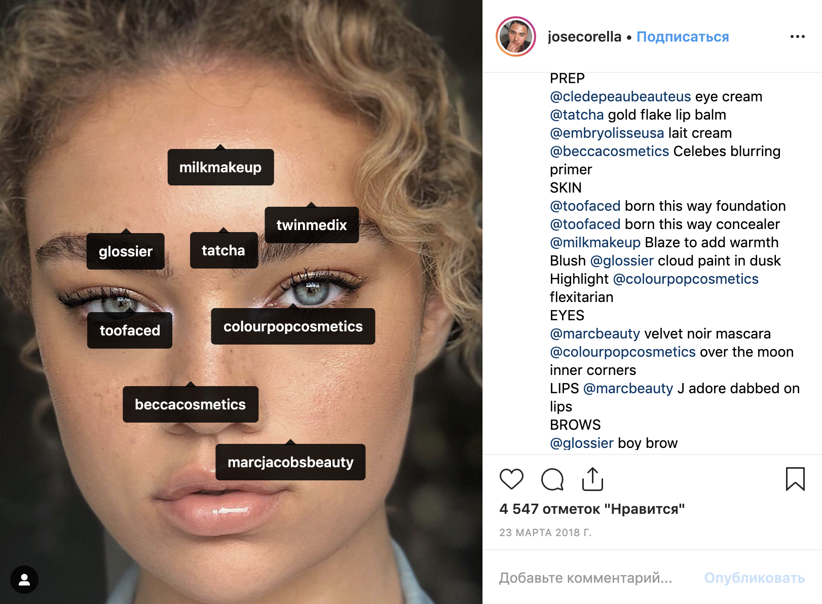 Невидимый макияж визажиста @josecorella и список испильзованных средств.