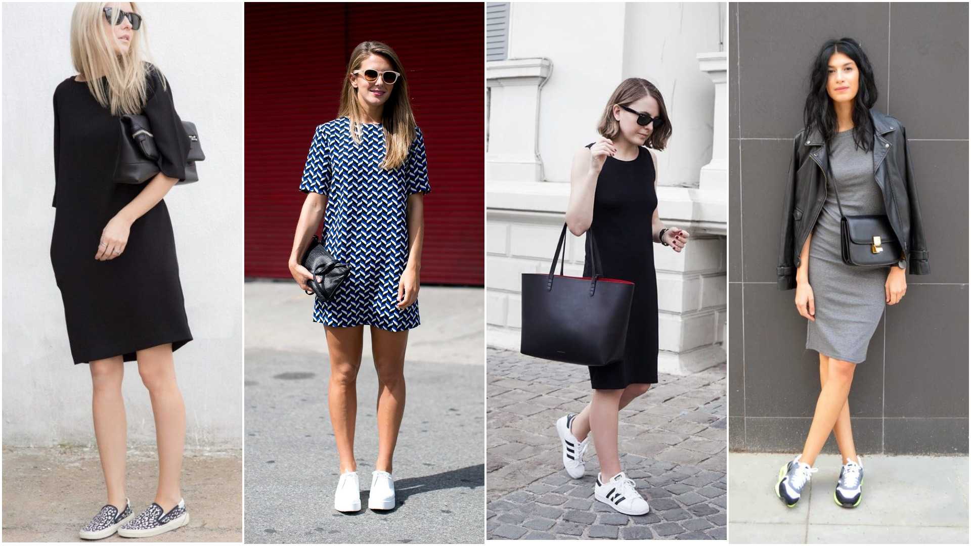 Не лучшие варианты сочетания прямых фасонов платья с кроссовками