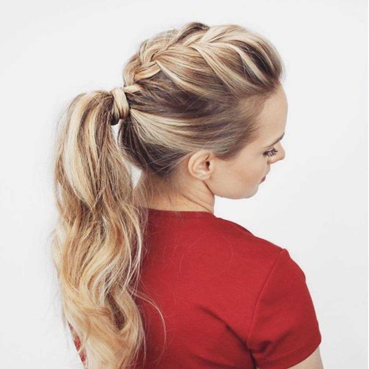 Девушкам со слегка вьющимися и прямыми волосами подойдут прически с высоким хвостом. Существует множество вариантов его оформления, одним из которых является обвитие главного элемента прически косой.