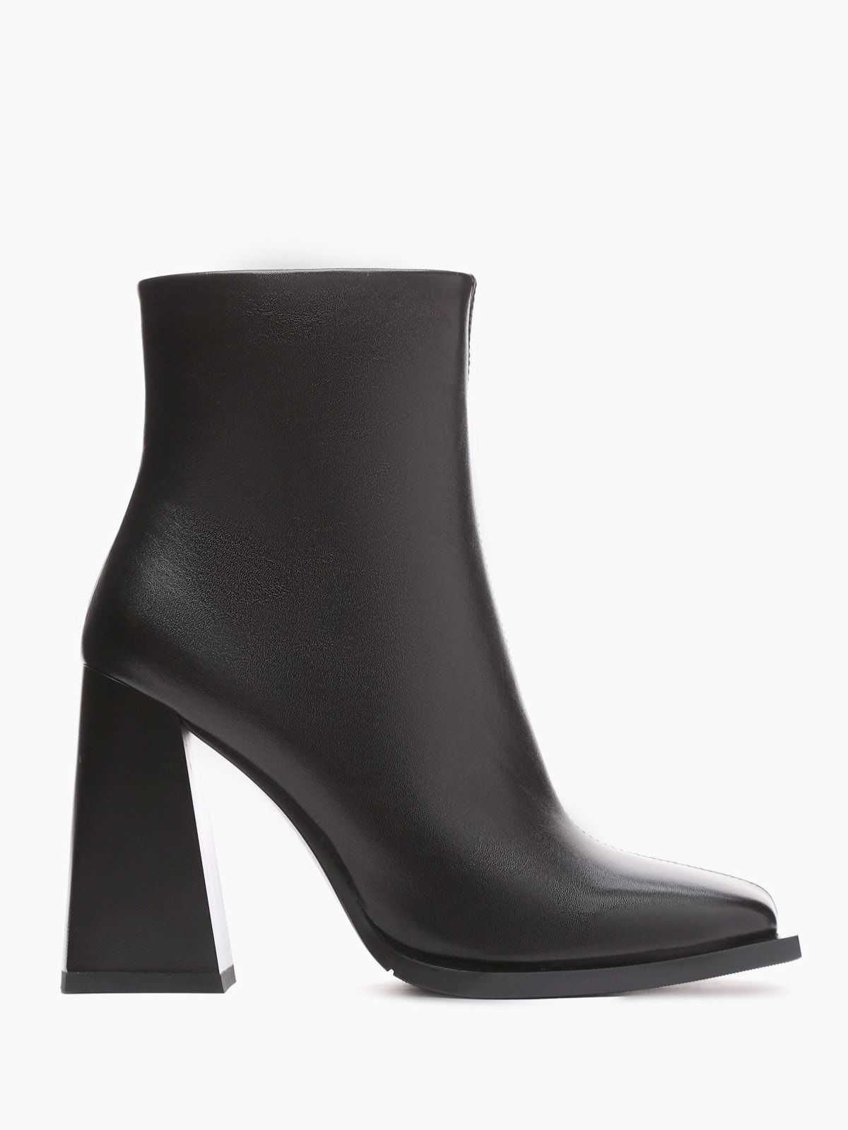 Сейчас на пике популярности – квадратный мысок, который прочно закрепился в трендах сезона еще в летних босоножках и туфлях. Он нашел свое продолжение и в демисезонной обуви: ботильоны с такой формой мыска тоже оказались чрезвычайно популярными.