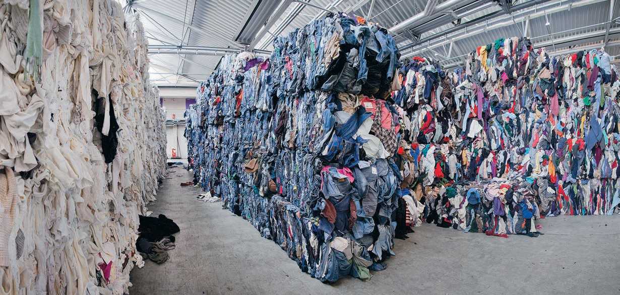 Старая одежда, поступившая на переработку из магазинов H&M в компанию SOEX, которая делает из нее новые текстильные волокна и материалы