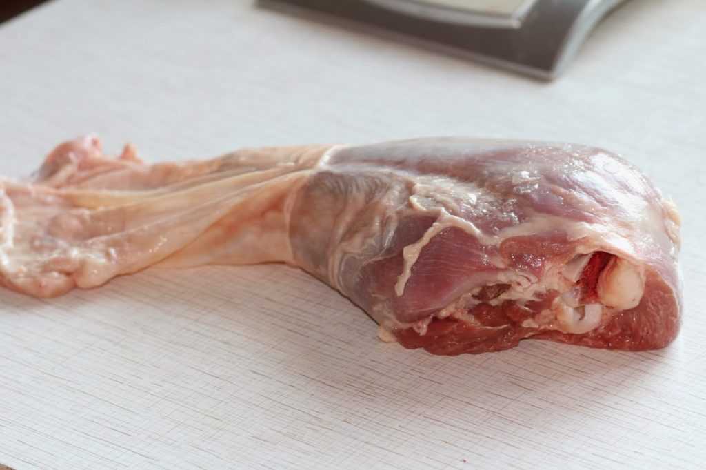 - Голень индейки проверяем на предмет остатков мелких перьев, промываем и просушиваем салфетками.