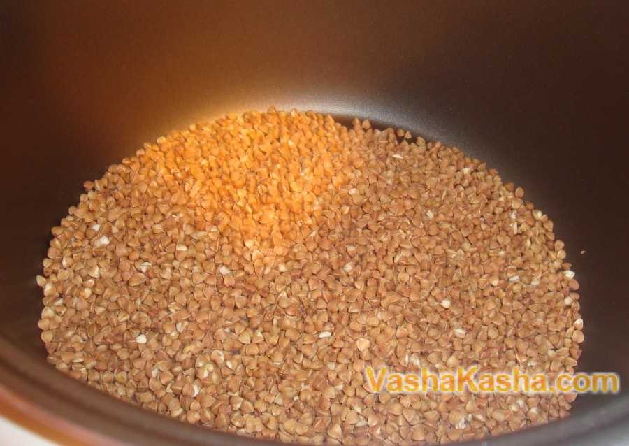 1. Насыпают нужное количество гречневой крупы в посуду и тщательным образом перебирают и промывают ее. В зависимости от прозрачности воды промывают несколько раз.