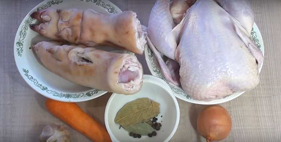 Видео о том, как сделать холодец из курицы и свиных ножек