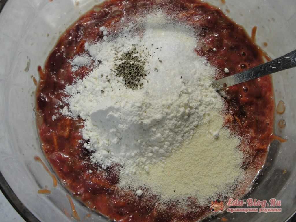 Как и в предыдущих рецептах – смешиваем все ингредиенты и отправляем на сковородку.