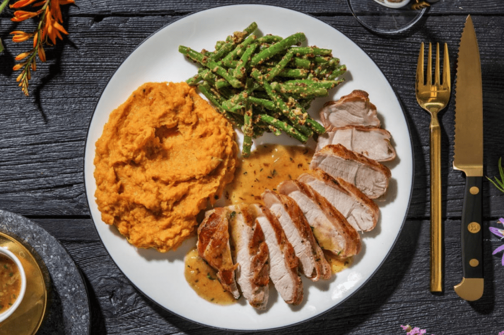 Подавать приготовленный свиной карбонад можно с макаронными изделиями, картофелем, различными салатами.
