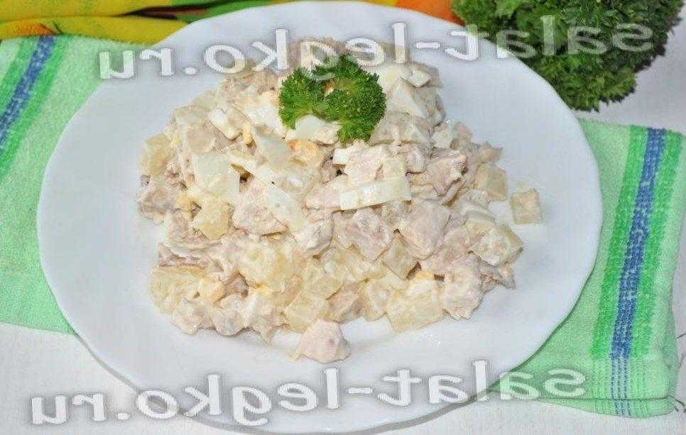 Салат «Сказка» с курицей, шампиньонами и сыром