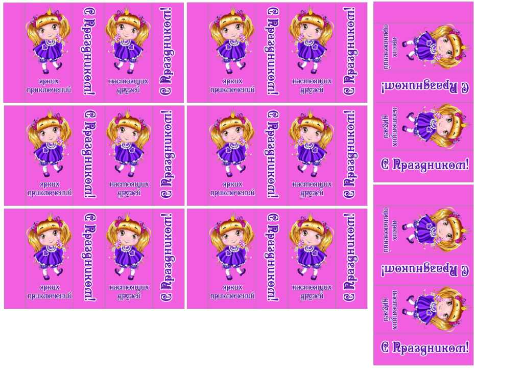 Необычная идея для шокобокса на День рожденье — шаблоны фантиков для конфеток типа «Мамба» и обложка на 4 штучки киндер-шоколадки в виде палочек.