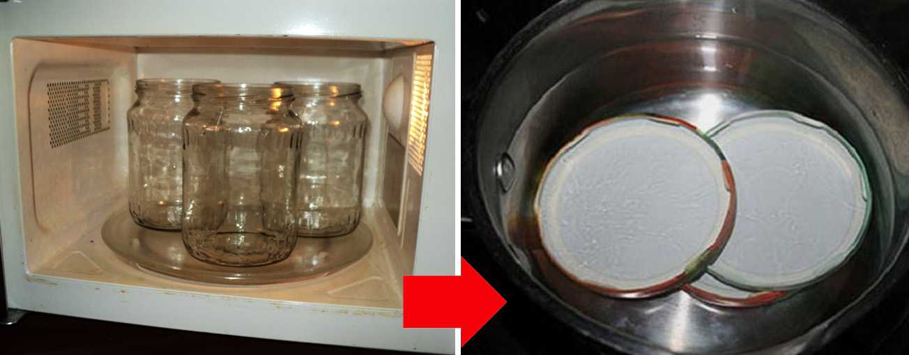 Сделать крышки из фольги, в крышке проделать пару отверстий, чтобы пар мог свободно выходить. Банки поставить на решетку в холодную духовку. Под решетку установить противень, на который налить воды.