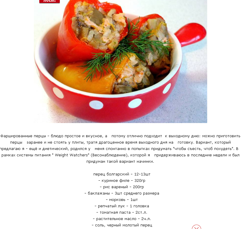 Низкокалорийный рецепт фаршированного перца