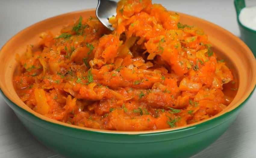 Простой рецепт капусты, тушенной на сковороде с морковью и луком