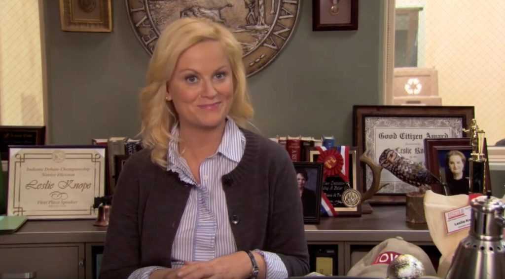 - Эми Полер в роли деятельной чиновницы Лесли Ноуп.