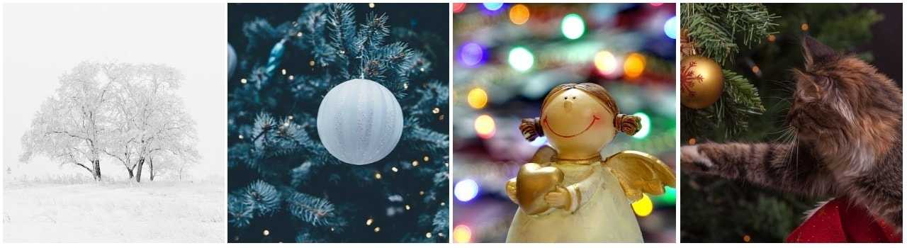 Ёлка, сладости, хлопушки.