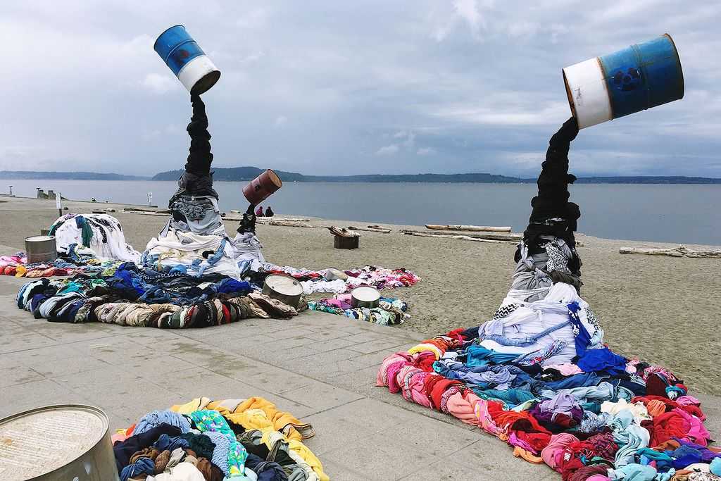 Инсталляция на пляже Сиэттла, посвященная воздействию быстрой моды на природу