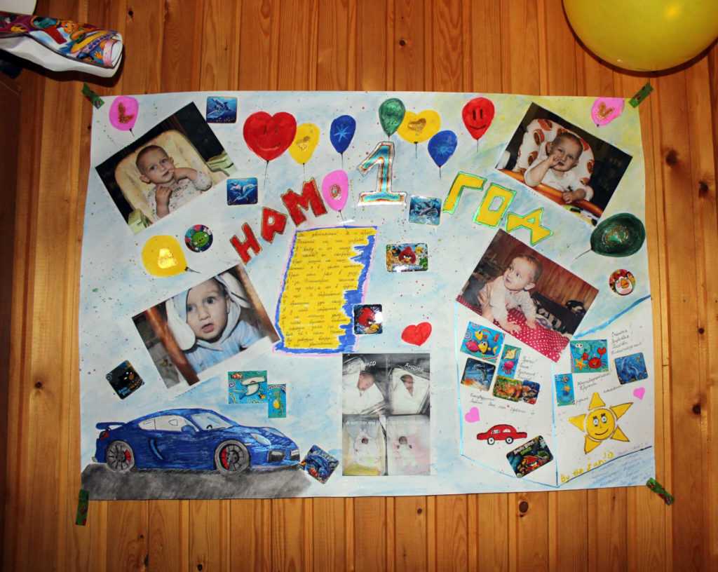 Хорошая забава для детского дня рождения. Заранее приготовьте плакат с фотографией ребенка и фотографиями его родителей, бабушек и дедушек в примерно таком же возрасте. Вместе с гостями выясните «в кого» у малыша носик, глазки, ушки и остальные части тела. Запишите результаты под фотографиями. В результате будет видно на кого из членов семьи карапуз похож больше всего.