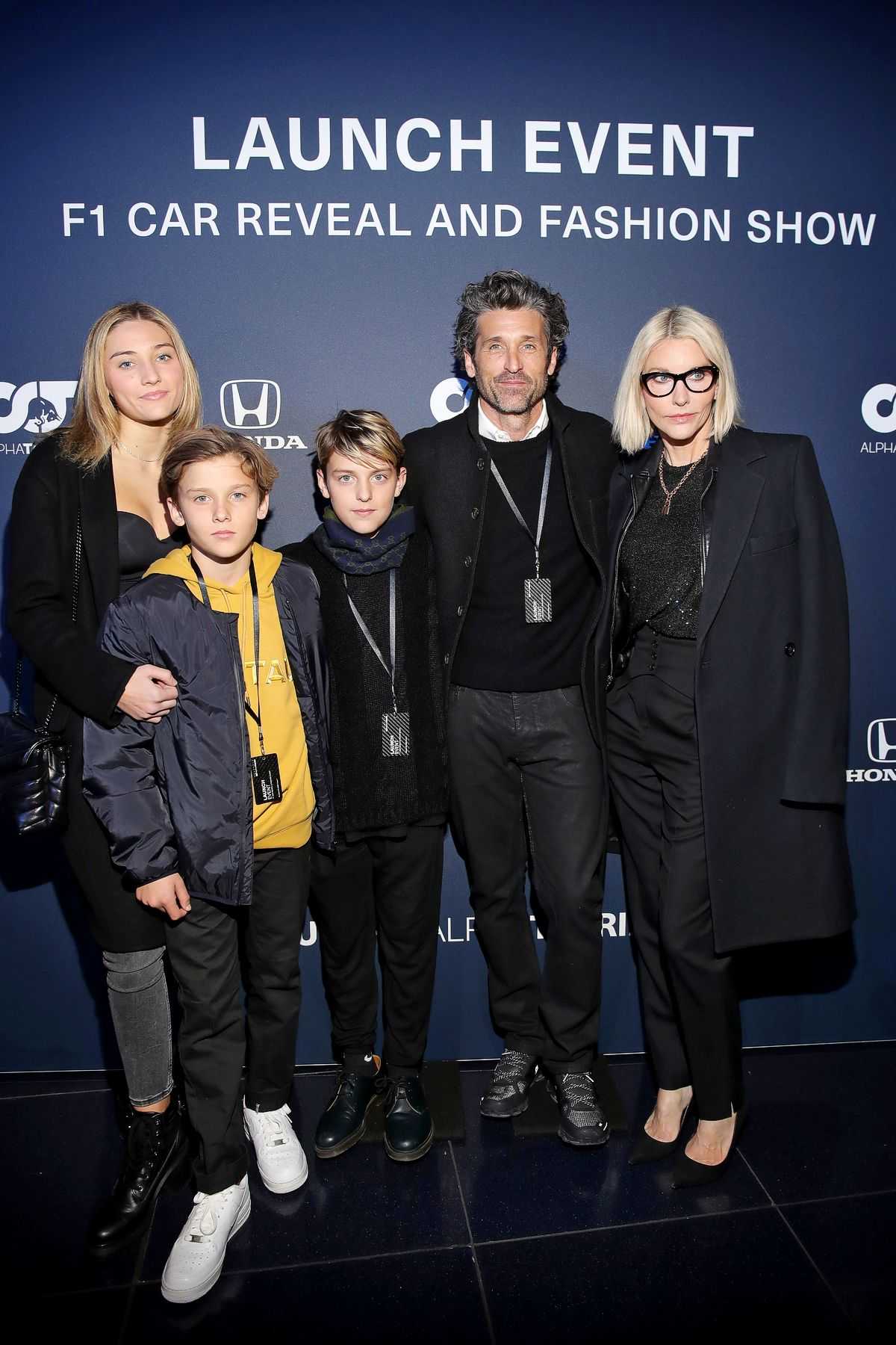 Патрик Демпси с женой Джиллиан Финк и детьми Таллулой, Дэрби и Салливаном на мероприятии по запуску Scuderia AlphaTauri в Зальцбурге, 14 февраля 2020 г.