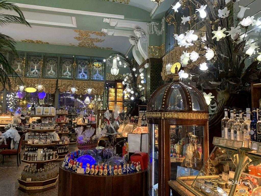 Цены в Елисеевском совсем не гуманные. Но кое-что можно купить недорого. Обычно это у прилавка у входа и там всегда очередь. Внутри магазина работает небольшое кафе. Здесь стоит выпить чашечку кофе или чая ради того, чтобы ощутить атмосферу Петербурга.