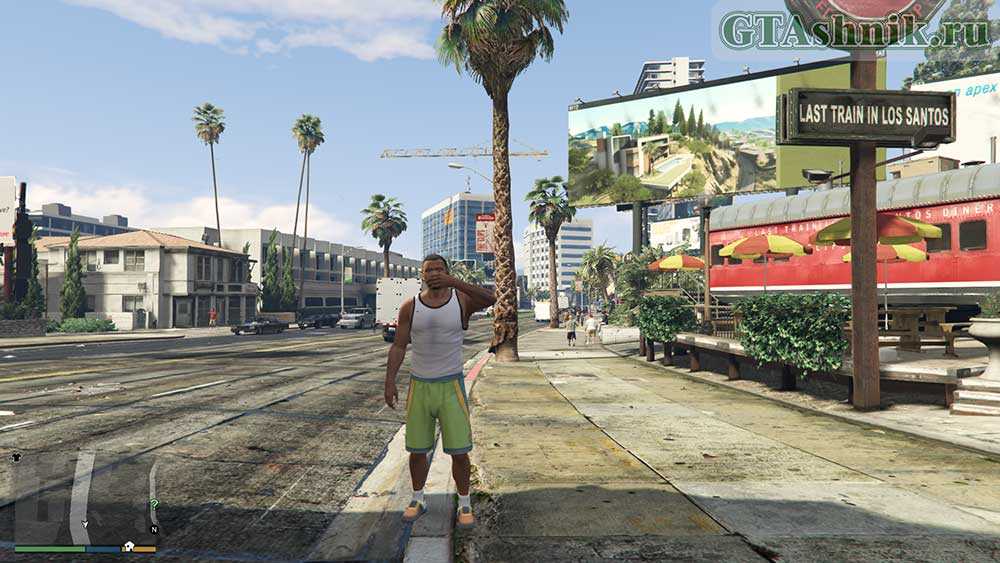 Пробел — поторопить водителя. Персонаж попросит ехать побыстрее, и таксист поедет довольно быстро, игнорируя светофоры. Иногда таксист едет по какому-то своему маршруту, петляя и сворачивая не туда. Поездка может затянуться — в таких случаях лучше промотать ее.ЛКМ или Enter — пропустить поездку. Будет стоить дороже. Время в игре уйдет вперед на столько, сколько мы ехали бы, не прокручивая поездку. Франклину услуги такси будут бесплатны, если он купил недвижимость — такоспарк.
