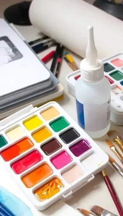 Палитра необходима для смешивания красок. Можно использовать пластиковую, керамическую или даже тарелку. Вода – ключевой элемент акварели! Используйте две емкости: одну для промывания кистей, другую – для чистой воды, чтобы набирать нужную концентрацию цвета. Маскирующая жидкость (или флюид) – незаменимый помощник для сохранения белых участков на рисунке. Нанесите ее на те места, которые хотите оставить нетронутыми, а после высыхания – аккуратно удалите.