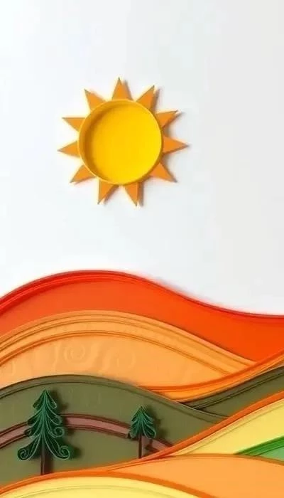Техники – свободный квиллинг, имитирующий природные формы. Можно использовать 3D-элементы для создания объема и реалистичности.