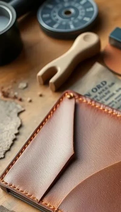 Шаг 2: Обработка кромок. С помощью фаскореза снимите фаску с краев всех деталей. Затем пройдитесь кромкорезом, чтобы выровнять края. Это придаст кошельку аккуратный вид. Обработайте кромки воском или восковым спреем для защиты от влаги и износа.