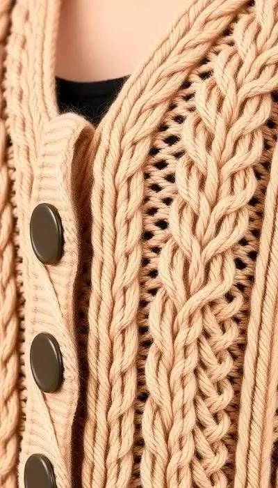 В 2025 году особенно востребован кардиган оверсайз с объемными косами. Схема предполагает использование толстой пряжи и спиц большого размера. Узор косы придает изделию текстуру и объем, а свободный крой обеспечивает комфорт. Такой кардиган идеально подходит для прохладной погоды.