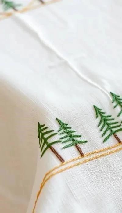 Машинная вышивка гладью позволяет быстро и точно наносить сложные рисунки на скатерти, сохраняя при этом высокое качество и детализацию. В 2025 году популярны дизайны, сочетающие классическую гладь с современными геометрическими узорами.